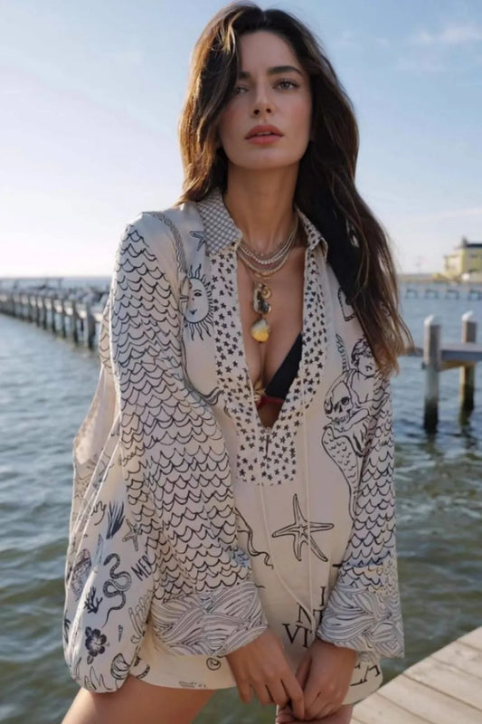 Openwork Backless Flare Sleeve Cover-Up Dress